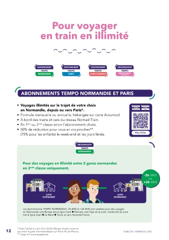 Les abonnements TEMPO NORMANDIE -26 ANS et +26 ANS sont valables pour des voyages